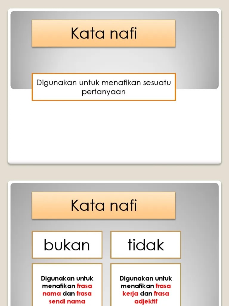 Berpandukan buku teks bahasa melayu sjkc tahun 4, saya bina video ini. Kata nafi digunakan untuk menafikan sesuatu pernyataan. Tulis bukan atau tidak pada ayat berikut.